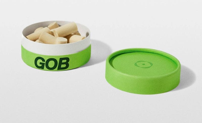 What is it: GOB has developed biodegradable earplugs made from mycelium, the root structure of fungi, as an alternative to traditional plastic foam plugs. Grown rather than manufactured, they offer similar noise reduction (12–25 dB) while being fully compostable. The material is soft, porous, and free of synthetic additives, designed to match conventional earplug performance.