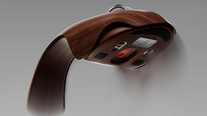 What is it: Arche One is a computer mouse made with a full walnut veneer exterior, featuring a curved, organic shape and a metal scroll wheel. It is designed with modern hardware specs including a high-DPI sensor, Bluetooth connectivity, USB-C charging, and a built-in battery, combining traditional wood material with standard wireless mouse functionality.